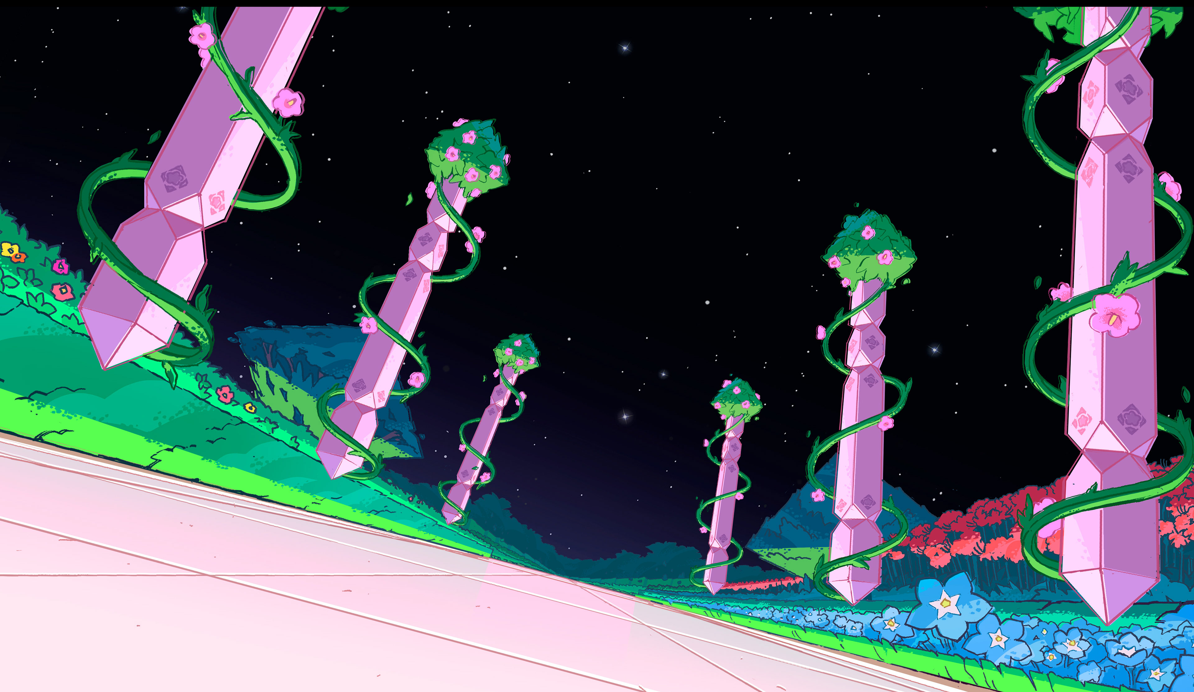 background paintings and promotional posters for steven universe, steven universe the movie, and steven universe future. responsible for color/paint only on all images.